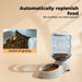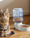 A versatile solution, this set works as a pet feeder, automatic pet feeder, cat feeder, dog feeder, gravity feeder, water dispenser, pet waterer, cat water fountain, and food dispenser, all in one practical and stylish set.