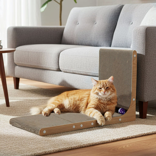 Cat Scratcher Board Bed L-Shaped Scratching Cardboard Ball Toy 68cm High
