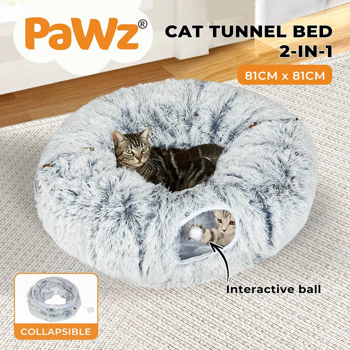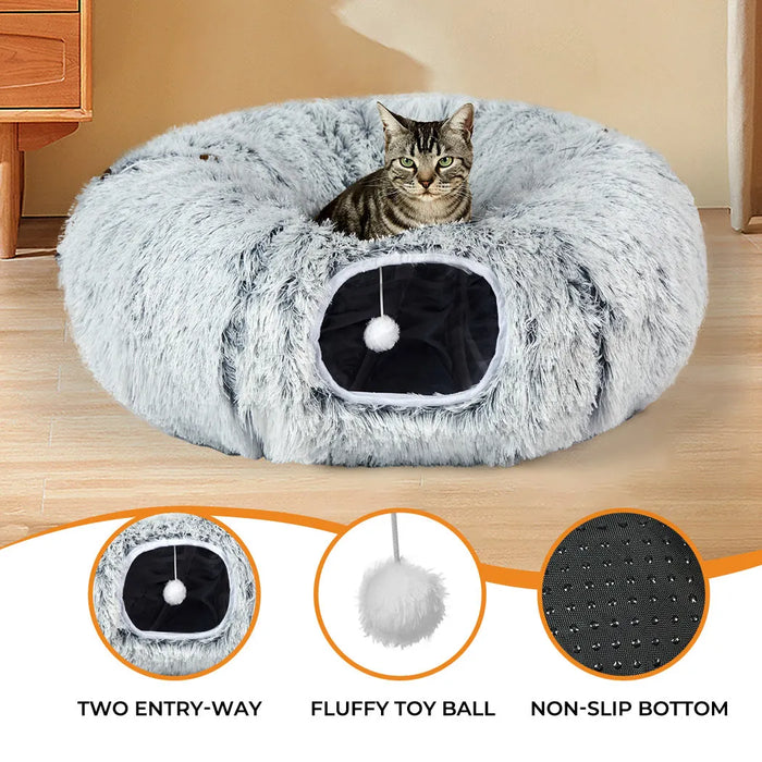 Whether your cat wants to dash through, sneak a nap, or swat at toys, this tunnel bed is a delightful space for rest and recreation.