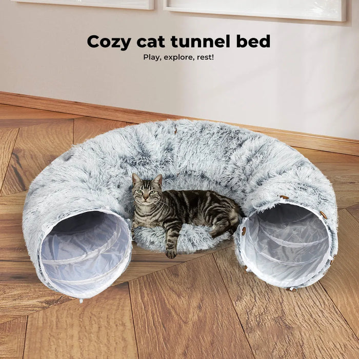 The Cat Tunnel Bed is more than just a play tunnel—it’s a plush cat bed that blends playtime and nap time into one cosy, foldable haven. Made with soft PV plush, this tunnel provides a gentle, comforting surface for your cat to rest on while offering interactive features to keep them engaged.