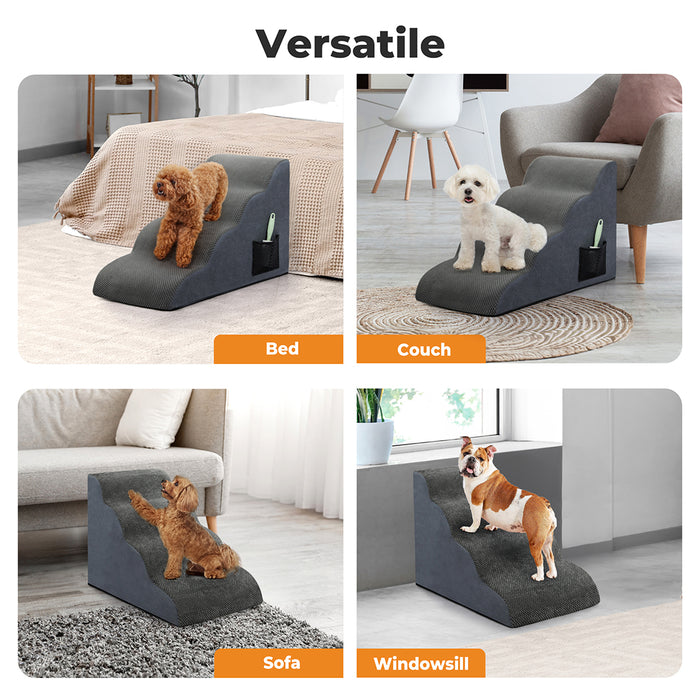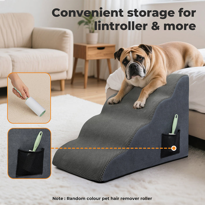 Lightweight and portable, the steps feature a handy side pocket for storing toys, treats, or grooming bits. The cover unzips for a quick wash—keeping things clean without fuss.