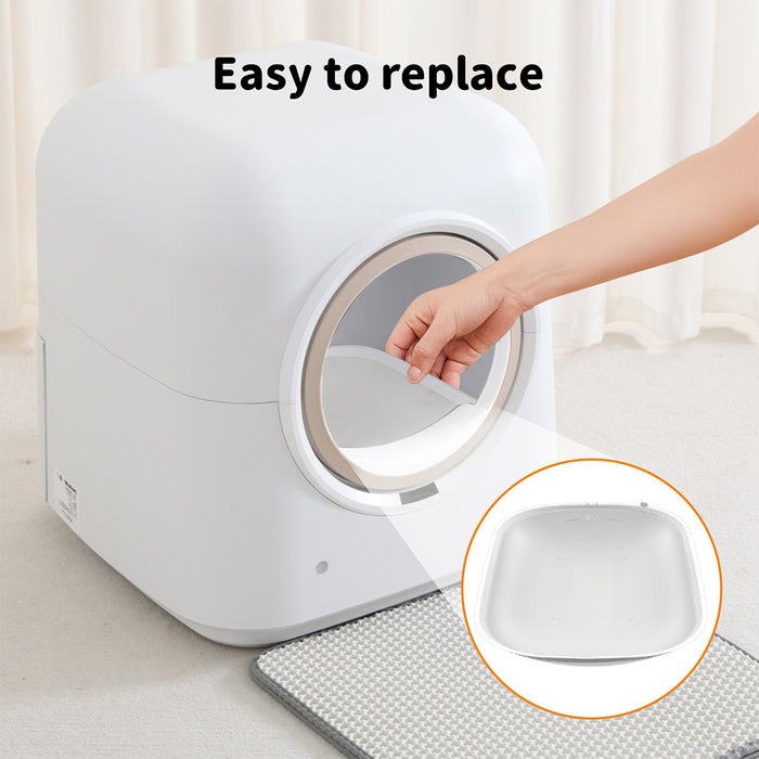 Designed for modern cat owners, the  Replaceable Silicone Liner Pad offers a smarter, more hygienic solution for automatic litter boxes. Its custom-fit shape slides effortlessly into most self-cleaning litter boxes, providing a secure, wrinkle-free base that improves your cat’s comfort and simplifies cleanup.