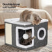 Made from pet-friendly materials, the indoor cat house is supported by a sturdy MDF base with a strong 15kg weight capacity, suitable for larger cats. The removable double-sided cushion provides warmth in winter and breathability in summer, making it a comfortable cat condo and practical cat cube bed for year-round use.
